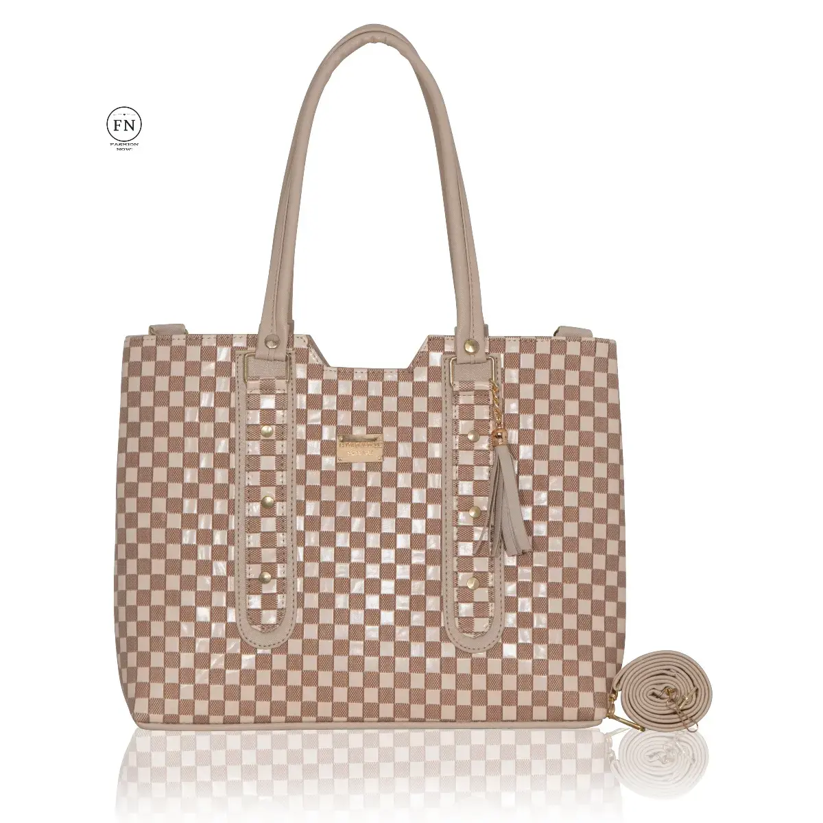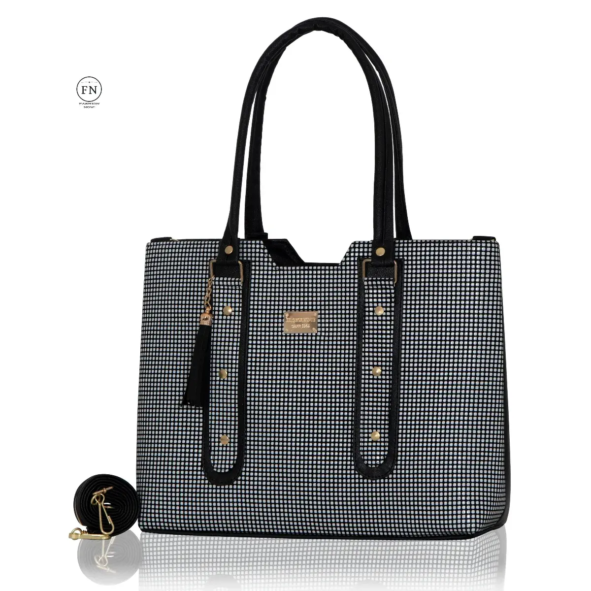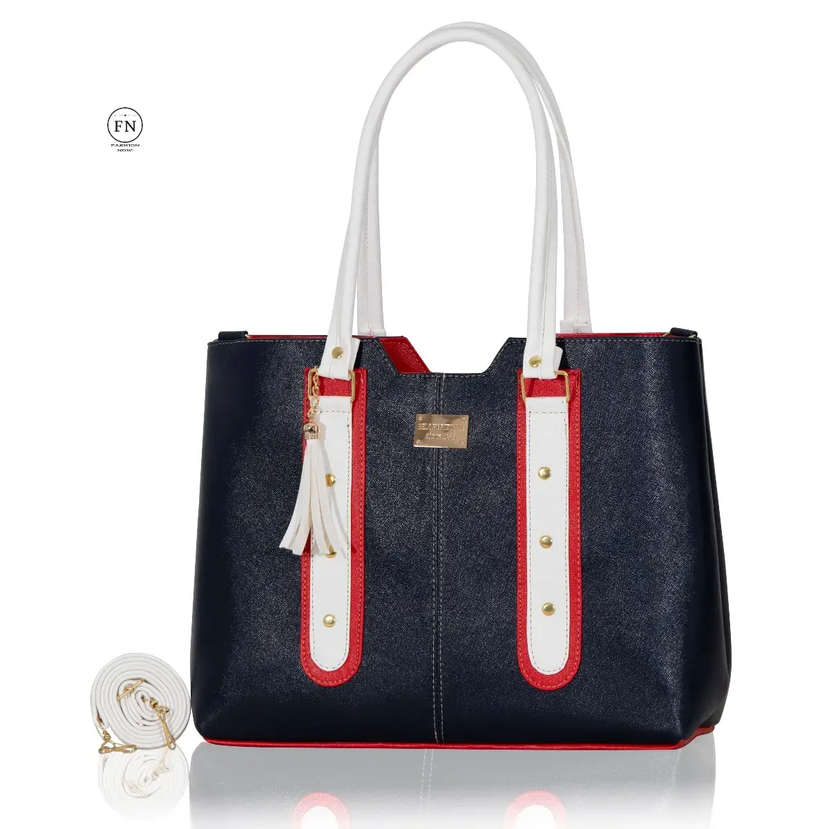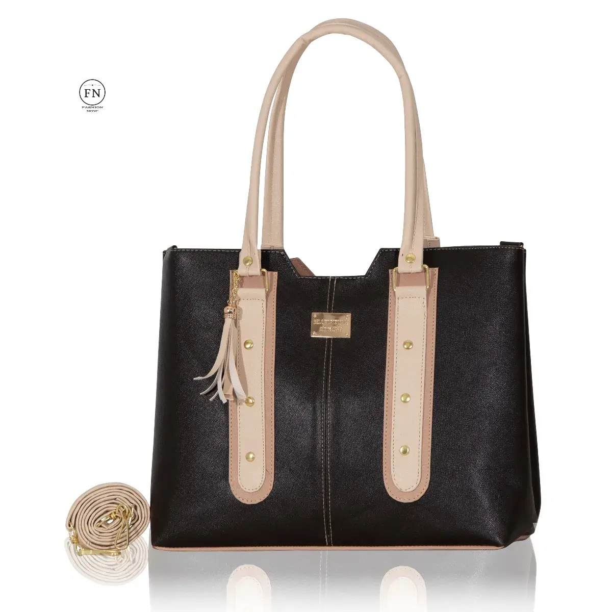 Diseño: Bolsa estructurada con paneles lisos, texturizados y detalles en asas
