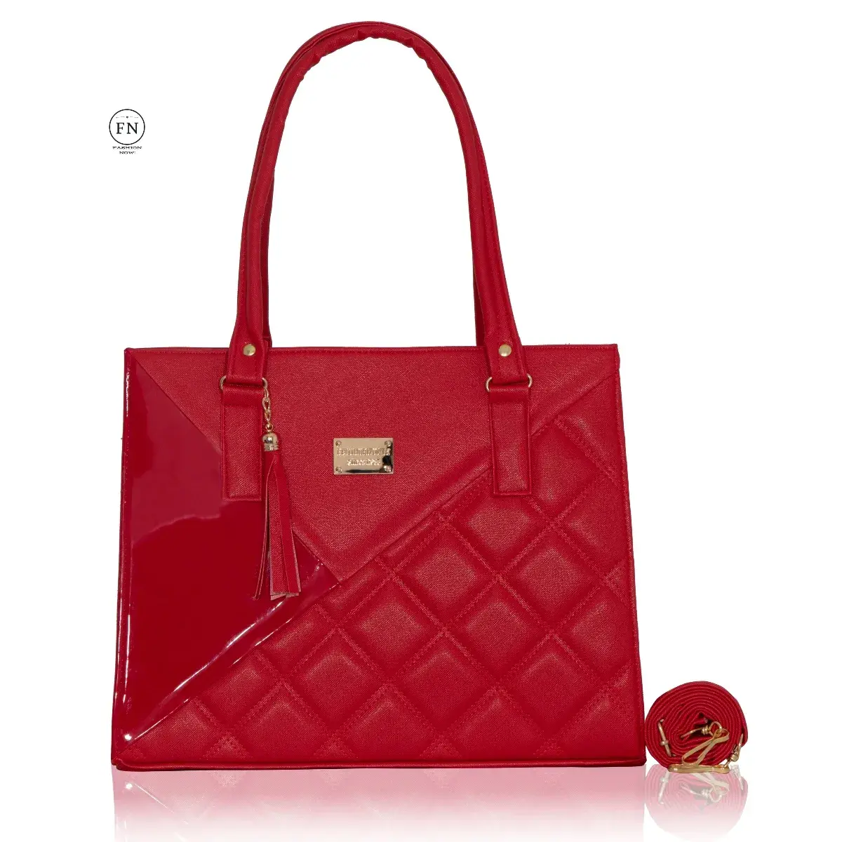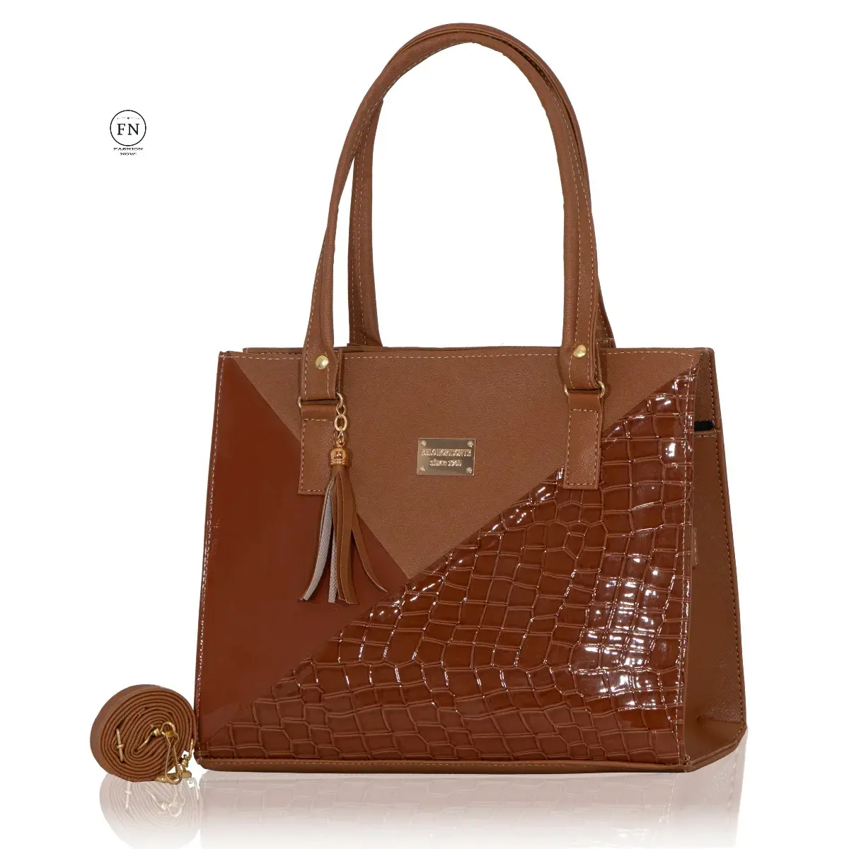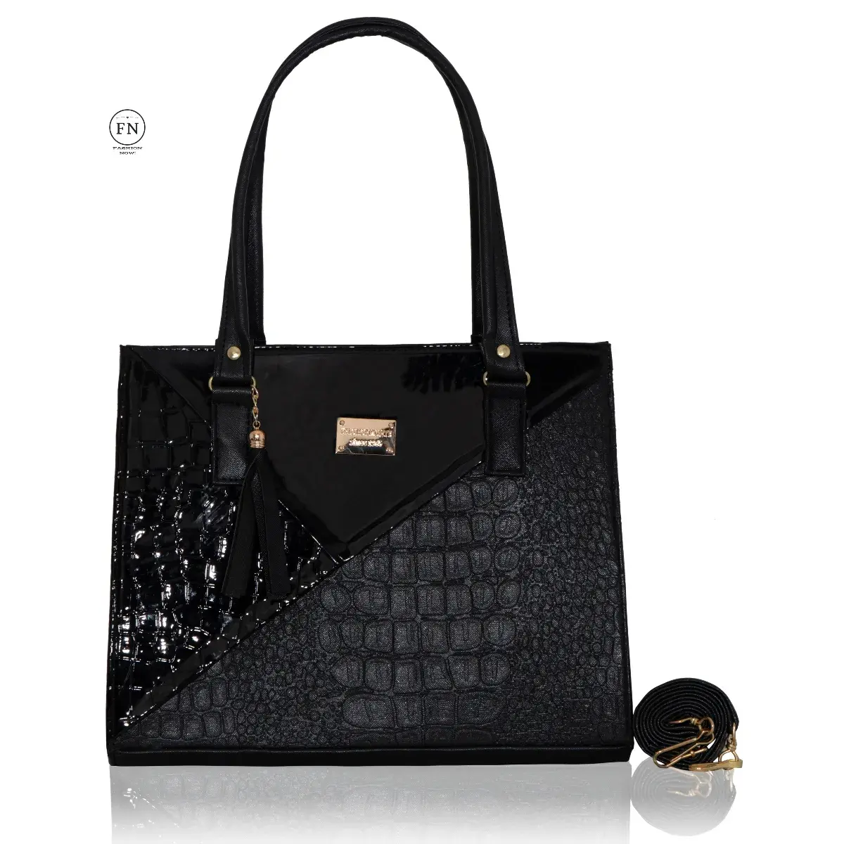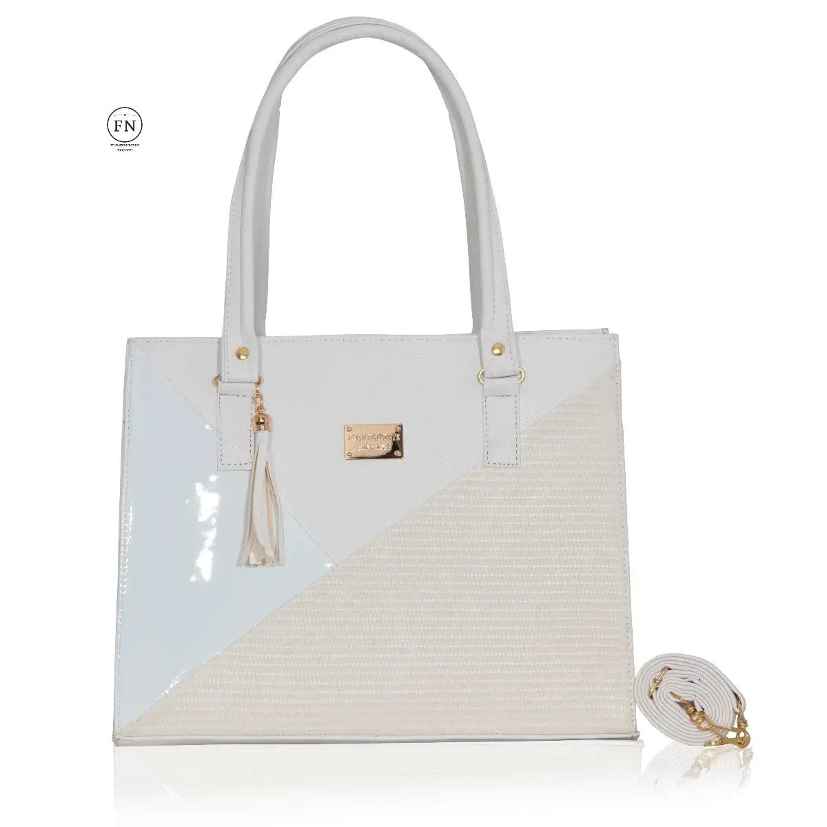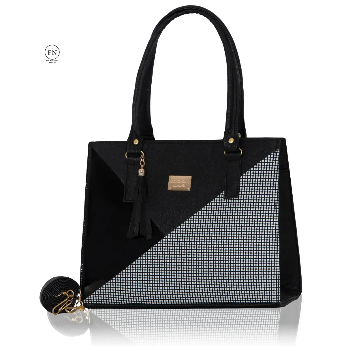 Diseño: Bolsa estructurada con paneles diagonales y texturas combinadas