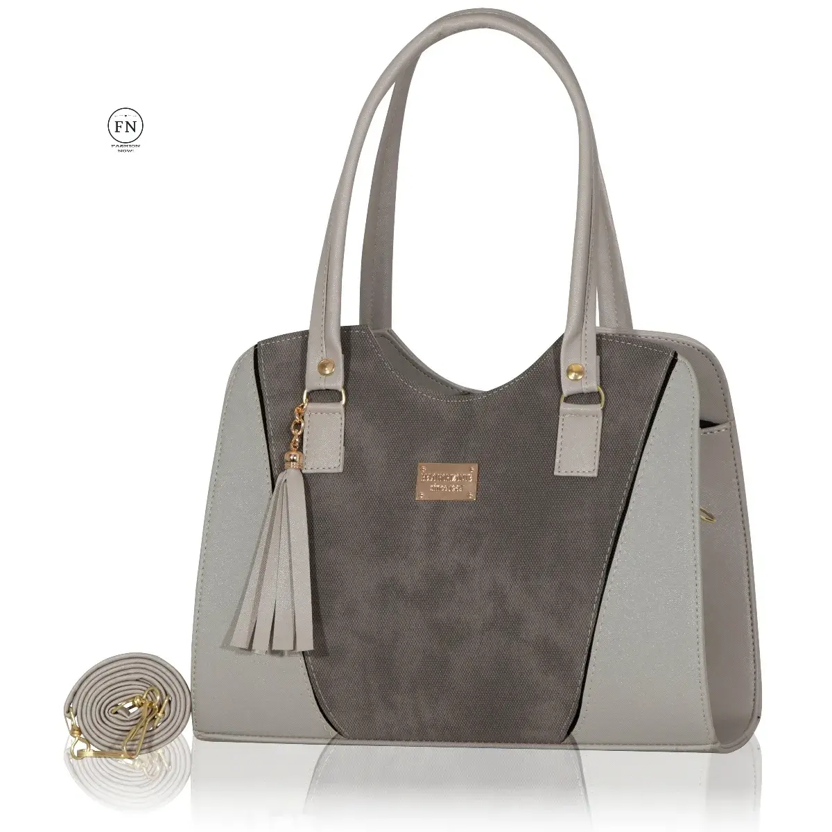 Diseño: Bolsa estructurada con paneles curvos y texturas combinadas
