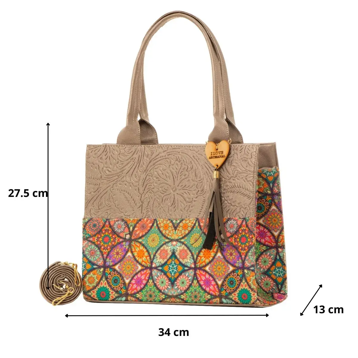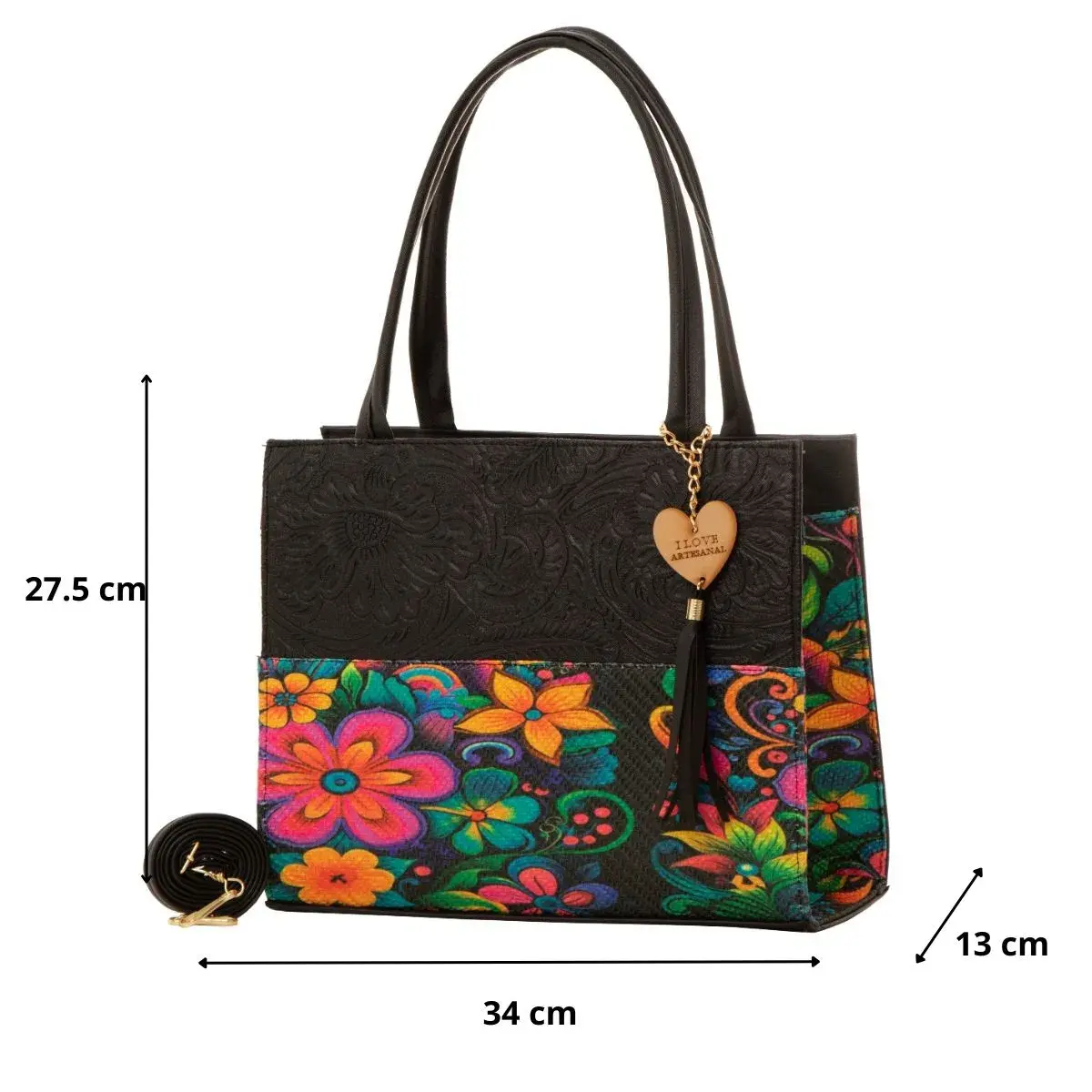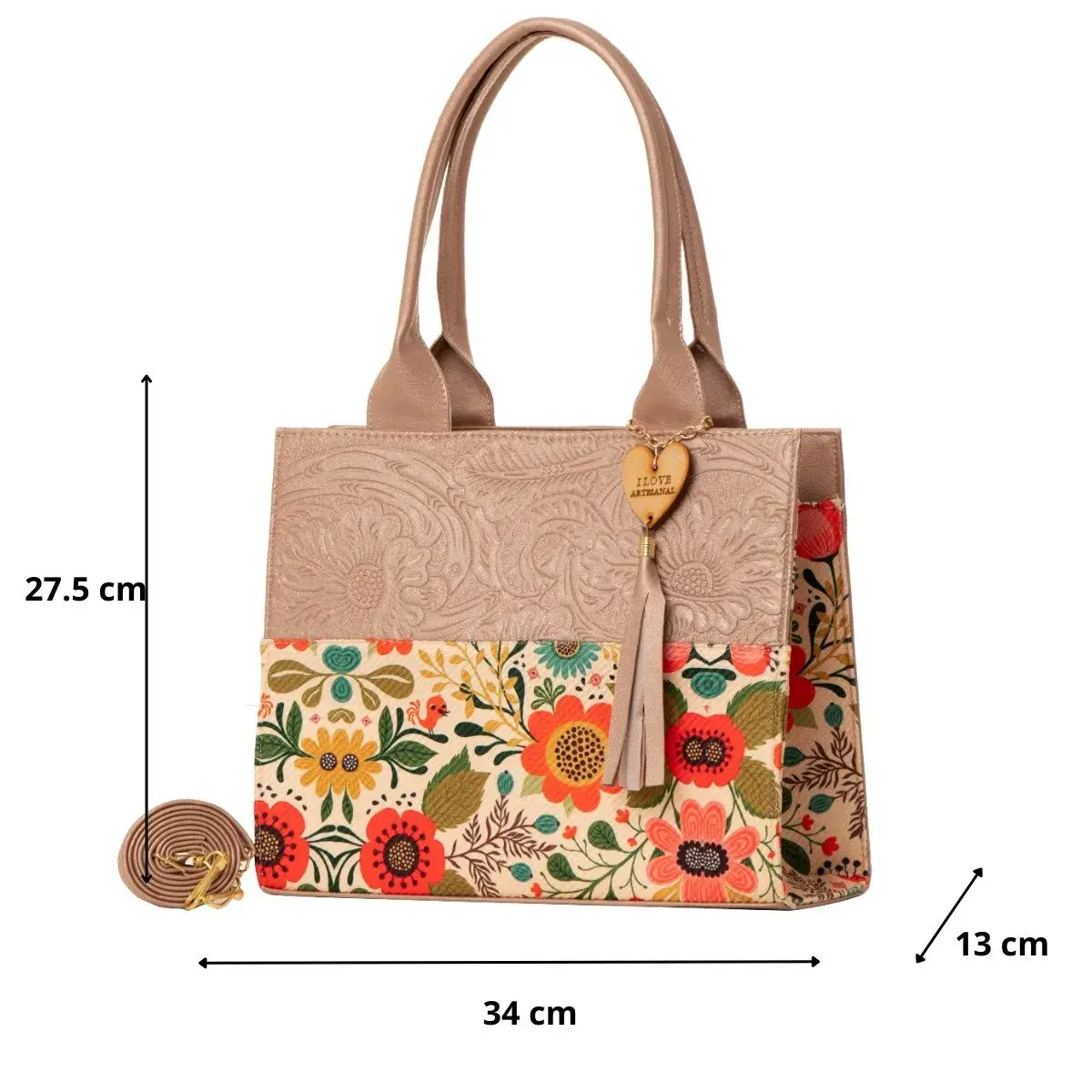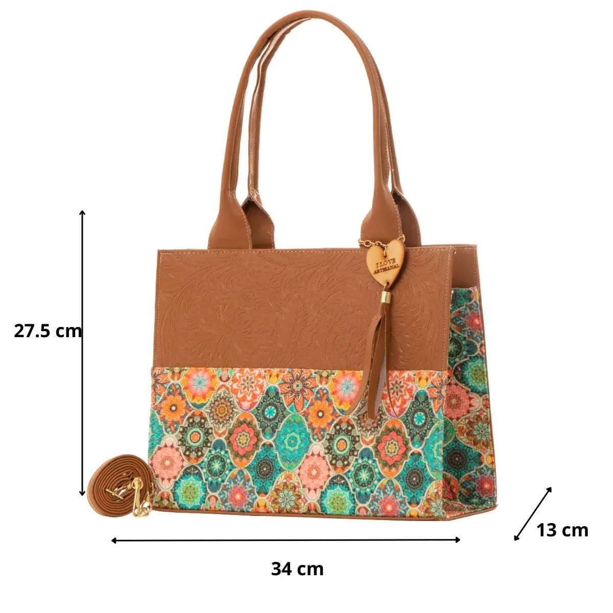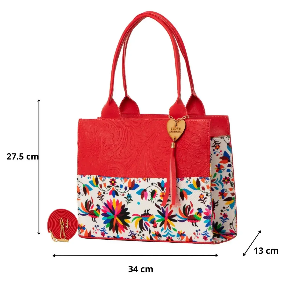 La Bolsa Artesanal estilo Mexicano de moda, ∞ forma parte del catálogo 2025. ∞ Compartimiento con cierre en la parte trasera. ∞ Asa larga para cruzar al hombro. ∞ Medidas: Ancho: 34cm Alto: 27cm y Profundidad: 13cm ∞Material: Sintético Premium o llamada Piel Vegana, ∞ Forro Interior: Textil. ∞ Detalle Placa Metálica color Dorado.∞