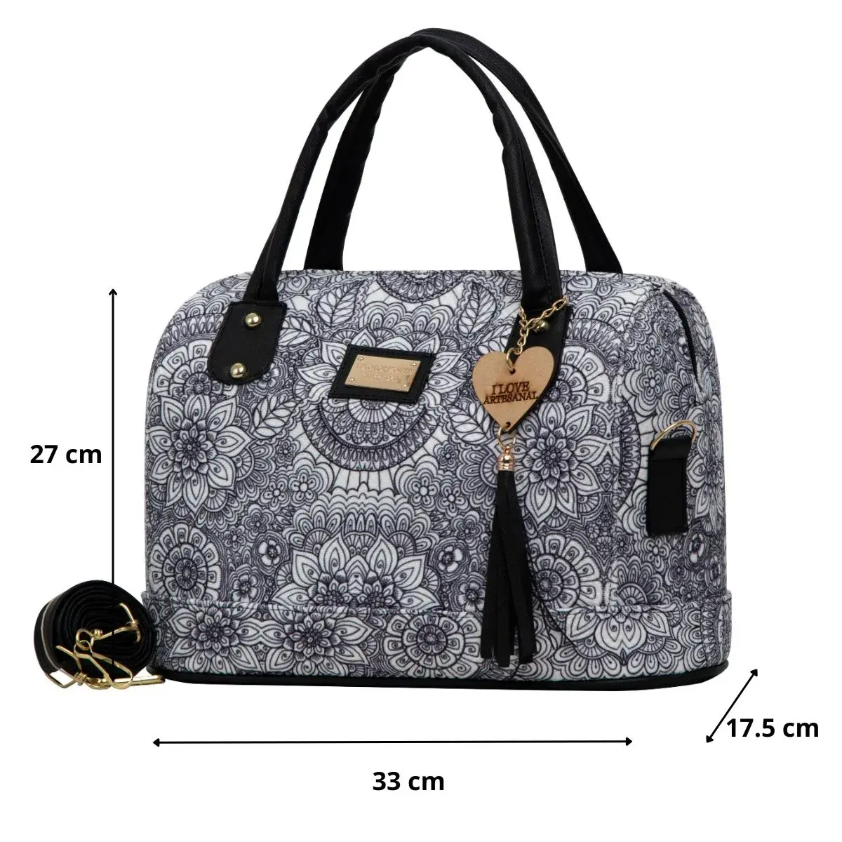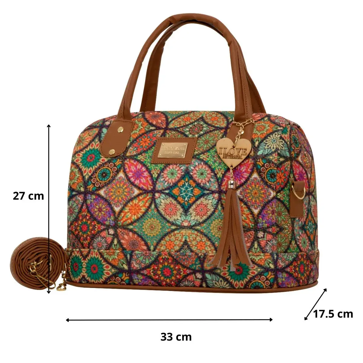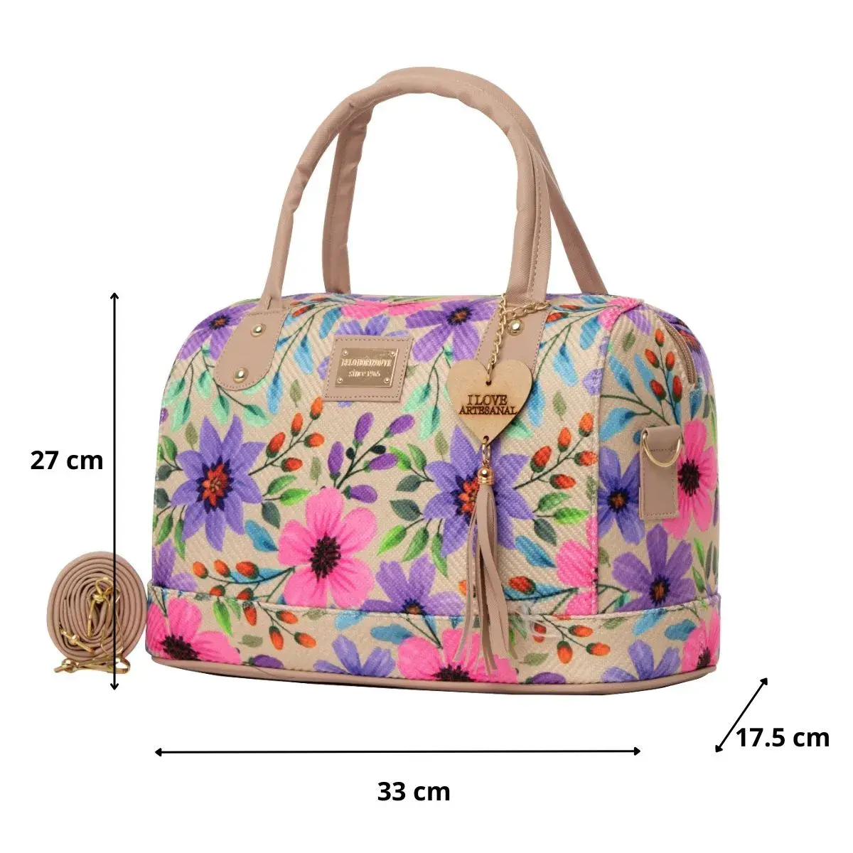 La Bolsa Artesanal estilo Mexicano de moda, ∞ forma parte del catálogo 2025. ∞ Compartimiento con cierre en la parte trasera. ∞ Asa larga para cruzar al hombro. ∞ Medidas: Ancho: 33cm Alto: 27cm y Profundidad: 17cm ∞Material: Sintético Premium o llamada Piel Vegana, ∞ Forro Interior: Textil. ∞ Detalle Placa Metálica color Dorado.∞