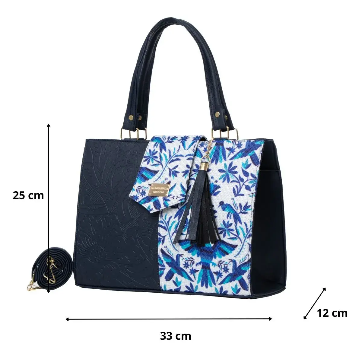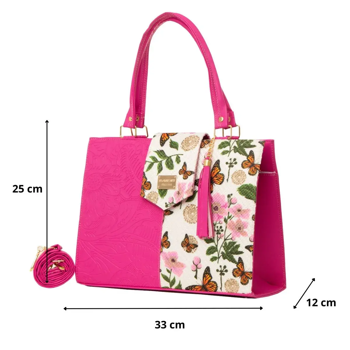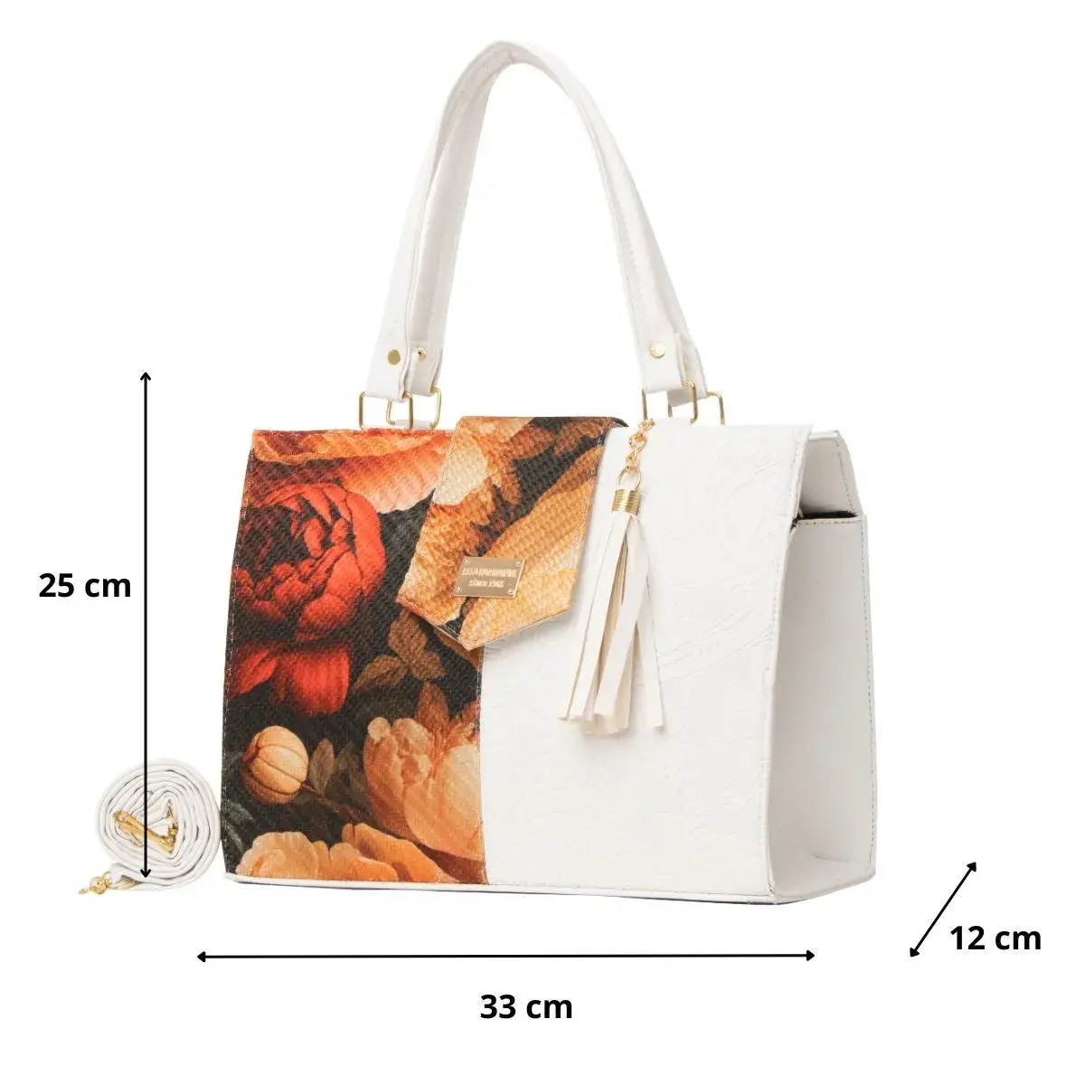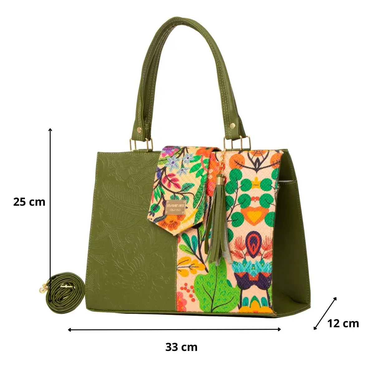 La Bolsa Artesanal estilo Mexicano de moda, ∞ forma parte del catálogo 2025. ∞ Compartimiento con cierre en la parte trasera. ∞ Asa larga para cruzar al hombro. ∞ Medidas: Ancho: 33cm Alto: 25cm y Profundidad: 12cm ∞Material: Sintético Premium o llamada Piel Vegana, ∞ Forro Interior: Textil. ∞ Detalle Placa Metálica color Dorado.∞