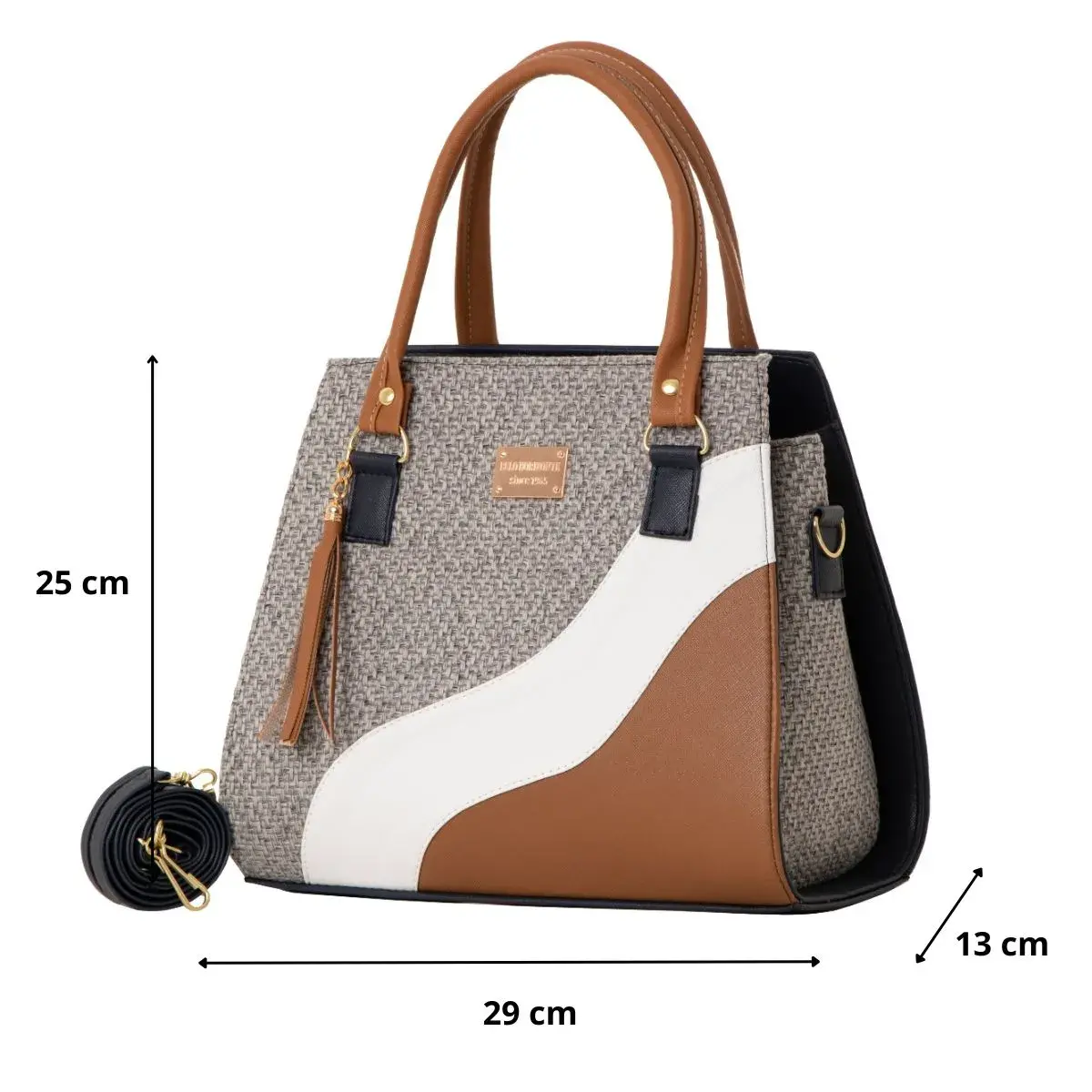 La Bolsa Artesanal estilo Mexicano de moda, ∞ forma parte del catálogo 2025. ∞ Compartimiento con cierre en la parte trasera. ∞ Asa larga para cruzar al hombro. ∞ Medidas: Ancho: 29cm Alto: 25cm y Profundidad: 13cm ∞Material: Sintético Premium o llamada Piel Vegana, ∞ Forro Interior: Textil. ∞ Detalle Placa Metálica color Dorado.∞