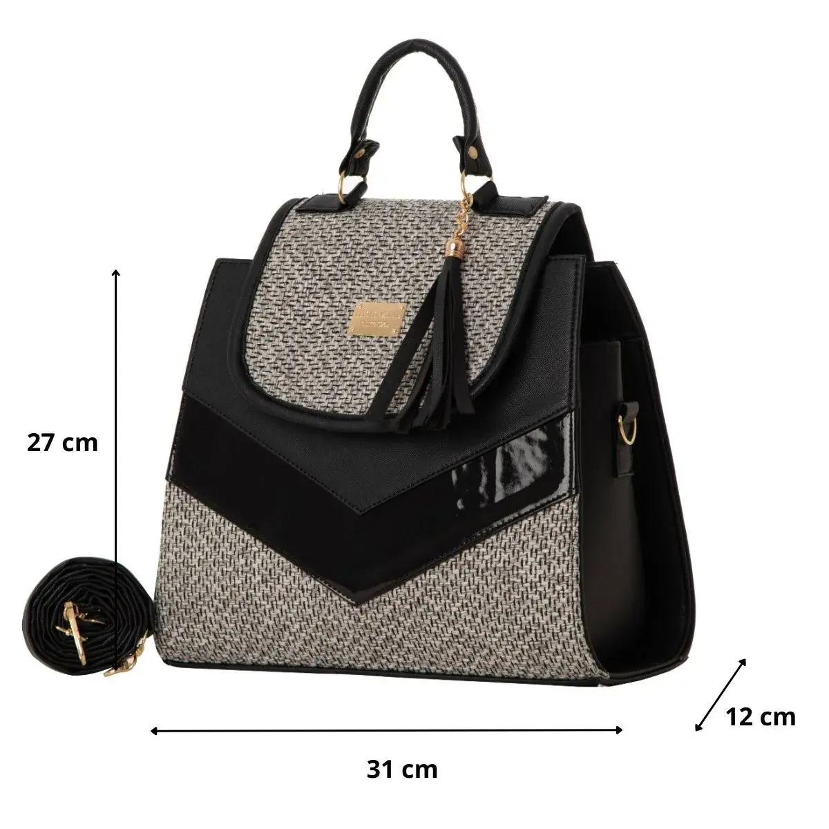 La Bolsa Artesanal estilo Mexicano de moda, ∞ forma parte del catálogo 2025. ∞ Compartimiento con cierre en la parte trasera. ∞ Asa larga para cruzar al hombro. ∞ Medidas: Ancho: 31cm Alto: 27cm y Profundidad: 12cm ∞Material: Sintético Premium o llamada Piel Vegana, ∞ Forro Interior: Textil. ∞ Detalle Placa Metálica color Dorado.∞