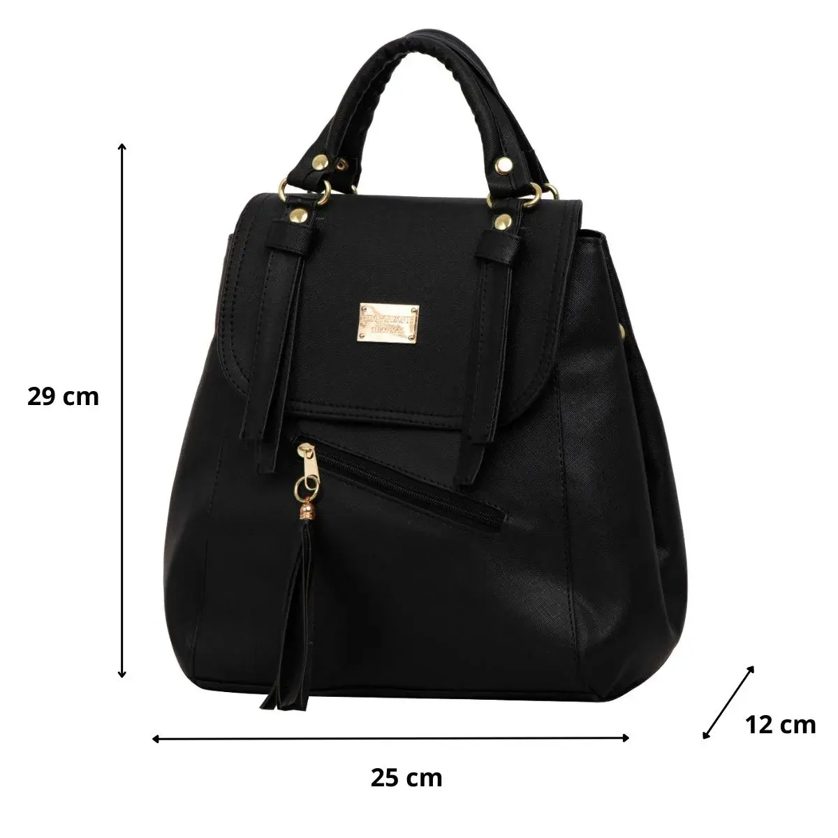 La Mochila Casual de moda, ∞ forma parte del catálogo 2025. ∞ Compartimiento con cierre en la parte trasera. ∞ Asa larga para cruzar al hombro. ∞ Medidas: Ancho: 28cm Alto: 33cm y Profundidad: 15cm ∞Material: Sintético Premium o llamada Piel Vegana, ∞ Forro Interior: Textil. ∞ Detalle Placa Metálica color Dorado.∞